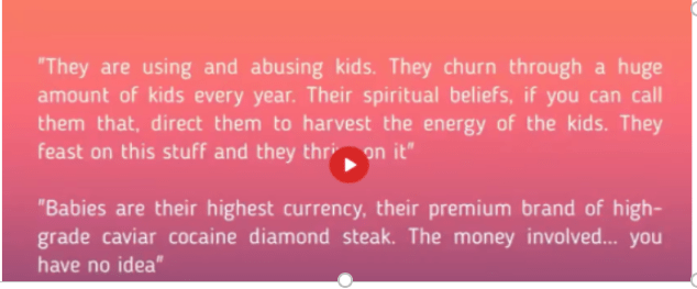 The baby blood creates something called adrenochrome. Look it up. Have a bucket handy for puking, kleenex for crying, and a Bible for praying handy before you do.