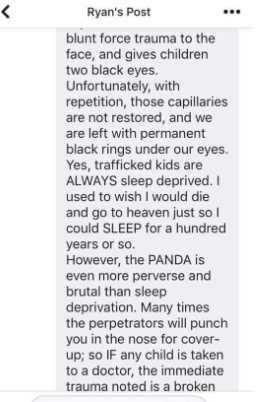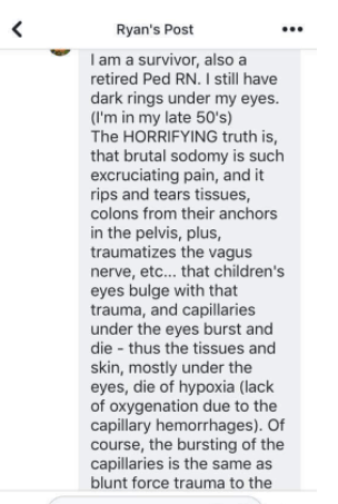 Torture. They TORTURE for entertainment, and for the DRUG they get from the pineal gland after they have had their fill of torturing for that particular child. Adrenochrome-it’s been around for ages and is finally finding the light of day for the whole world to know about and STOP. The thought of all those innocent children, babies, newborns….I’ve lost sleep over this. We all should. This has GOT to be stopped. Someway, somehow.