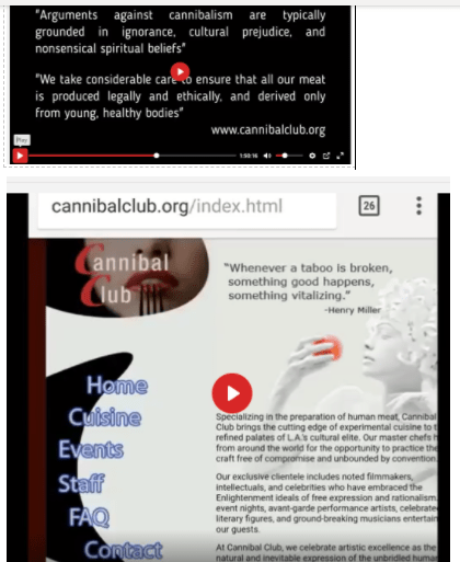 There is a restaurant in California called Cannibal Club. Now, the pictures are obviously fake people being eaten, but really, who does that?! The “elite”, that’s who. Oh and maybe the younger goth-types trying to be edgy.