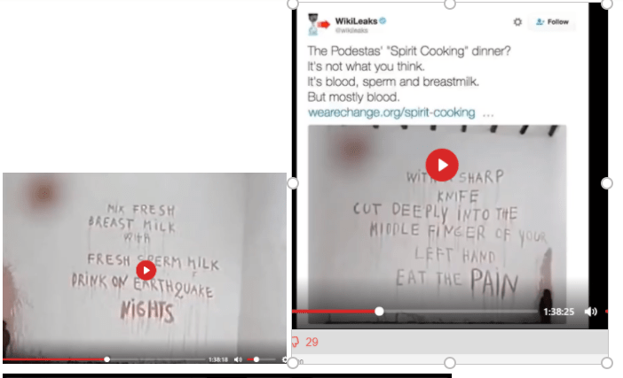 Devil worship, cannibalism, “art” depicting child sexual abuse and torture is all tied to “elitists,” including the Clintons, other politicians, computer tech gurus, and the entertainment industry. It all ties together-it mathematically cannot all be one giant coincidence.