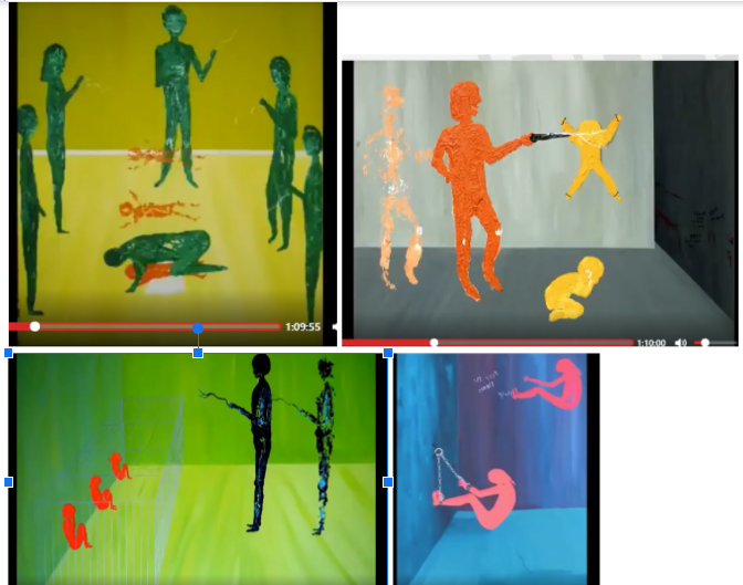 Now look at the following artwork. Again, these are in Podesta’s home and the pizza parlor he is closely associated with. Note the red shoes and the hands behind the children’s backs that are kneeling. And look closely at the other picture that has one lone child that is also tied up-is it me or does he look eerily similar to Cooper Anderson?